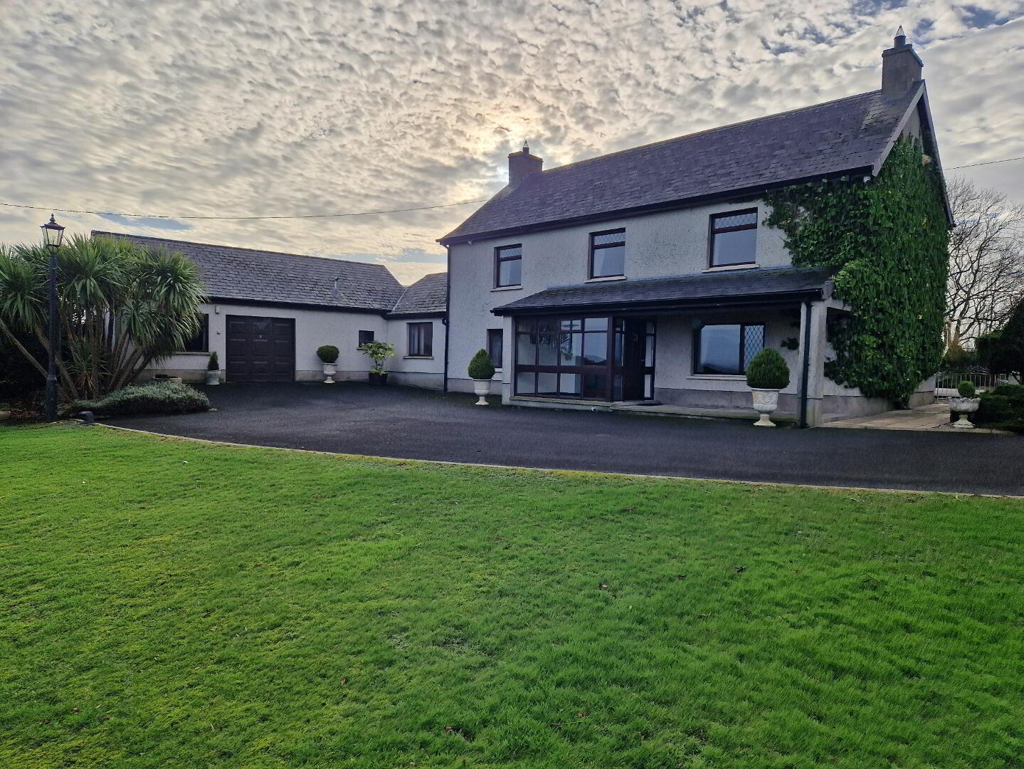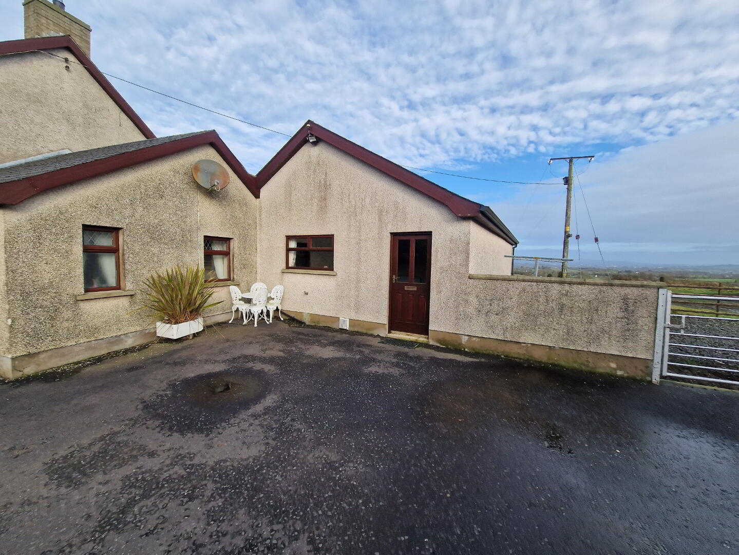 Out the front there is large mature gardens and an attached garage. The large front garden has a remote control lawn mower who will spend his days happily cutting the grass for you. The rear of the property has a large, tarmacked yard with another garden leading off it.