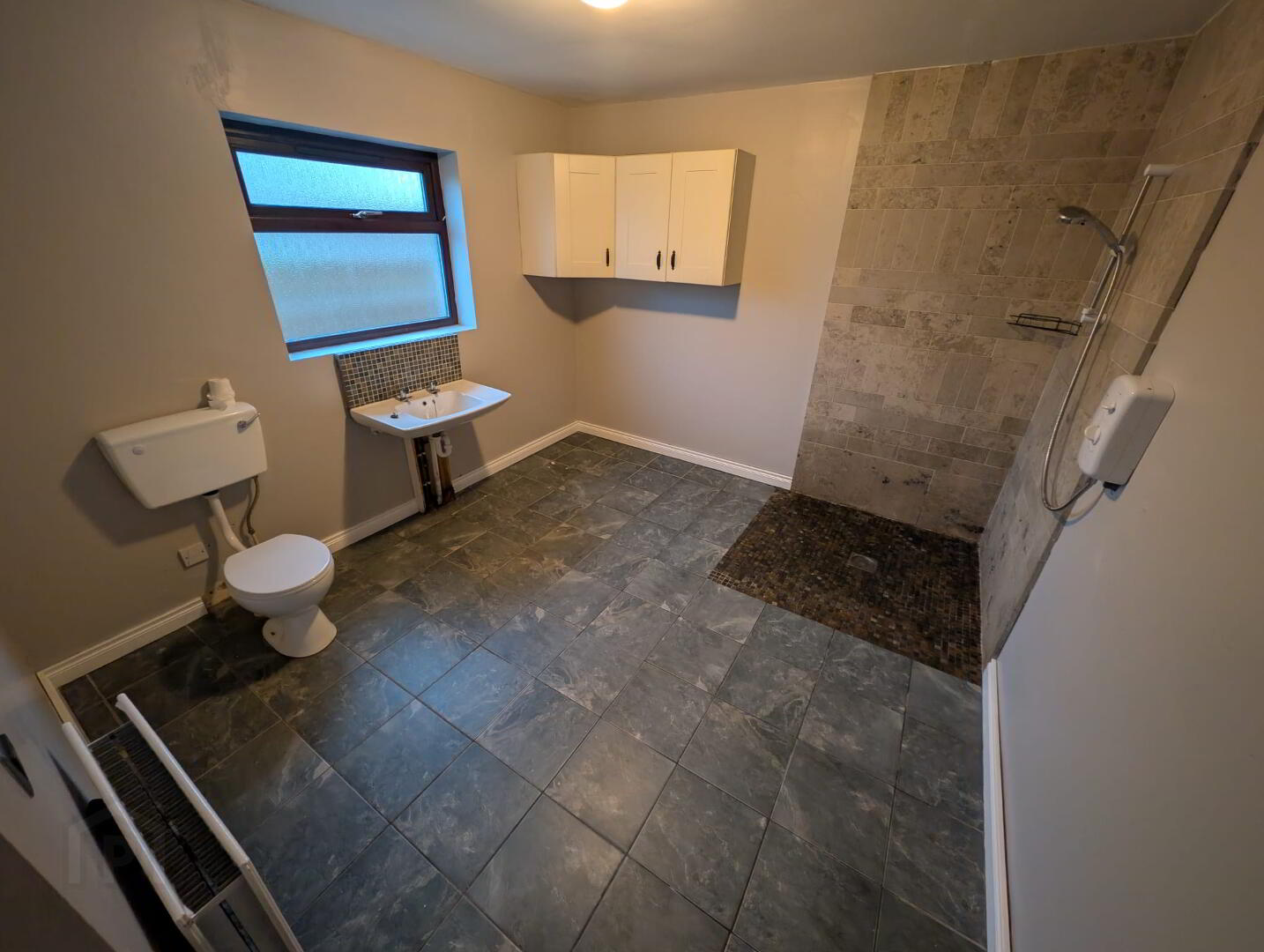 Kitchen/dinning room – A modern kitchen with a good level of high and low units, space for a built in cooker, washing machine and double door fridge freezer.