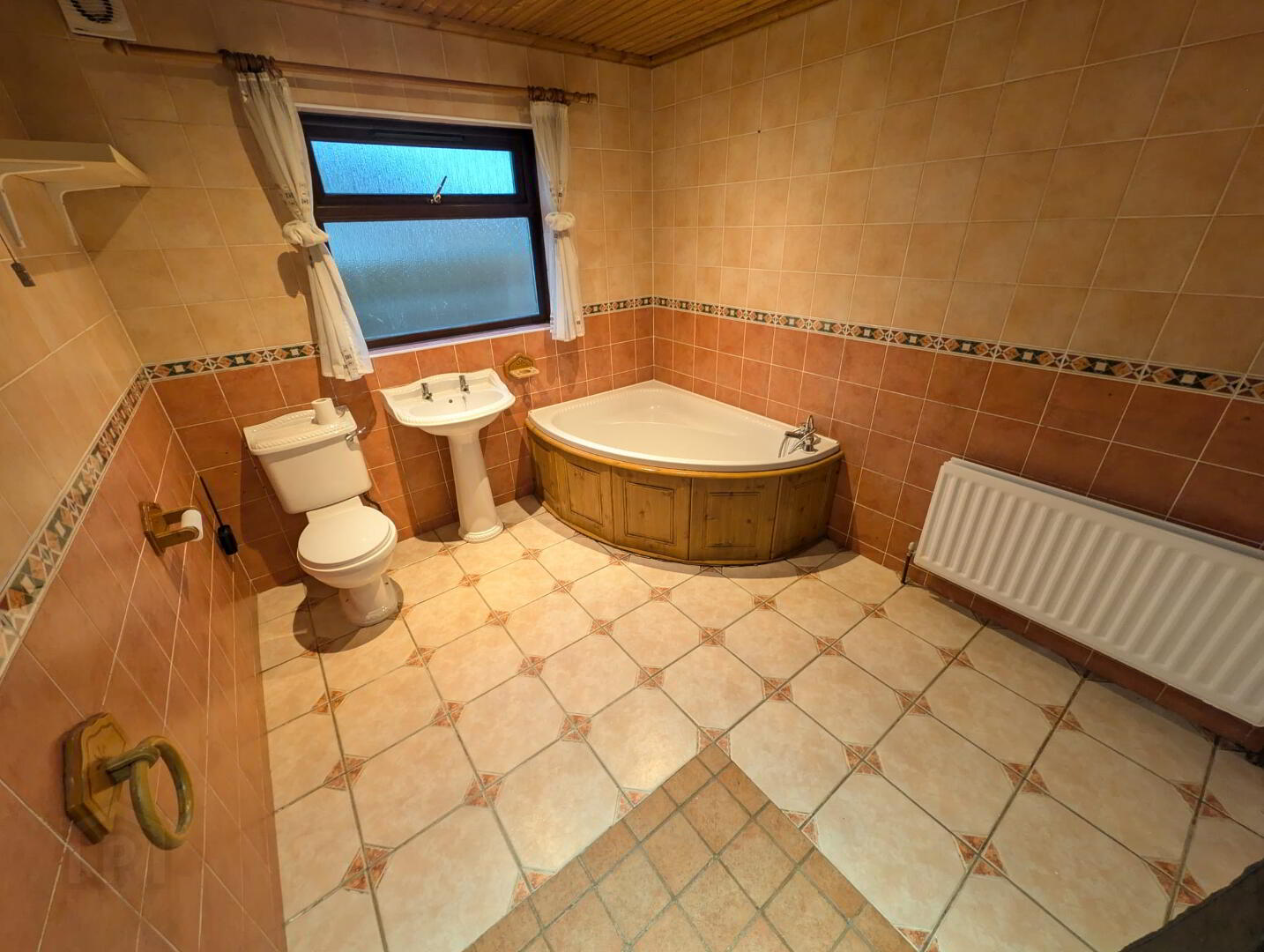 Bathroom – Tiled flooring, 4 piece bathroom suite to include corner bath and separate electric shower