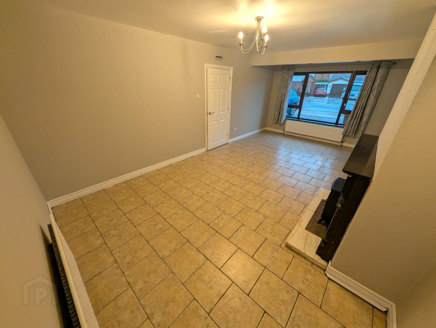 Reception room – Tiled flooring, fireplace with electric stove insert.