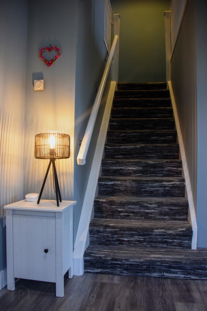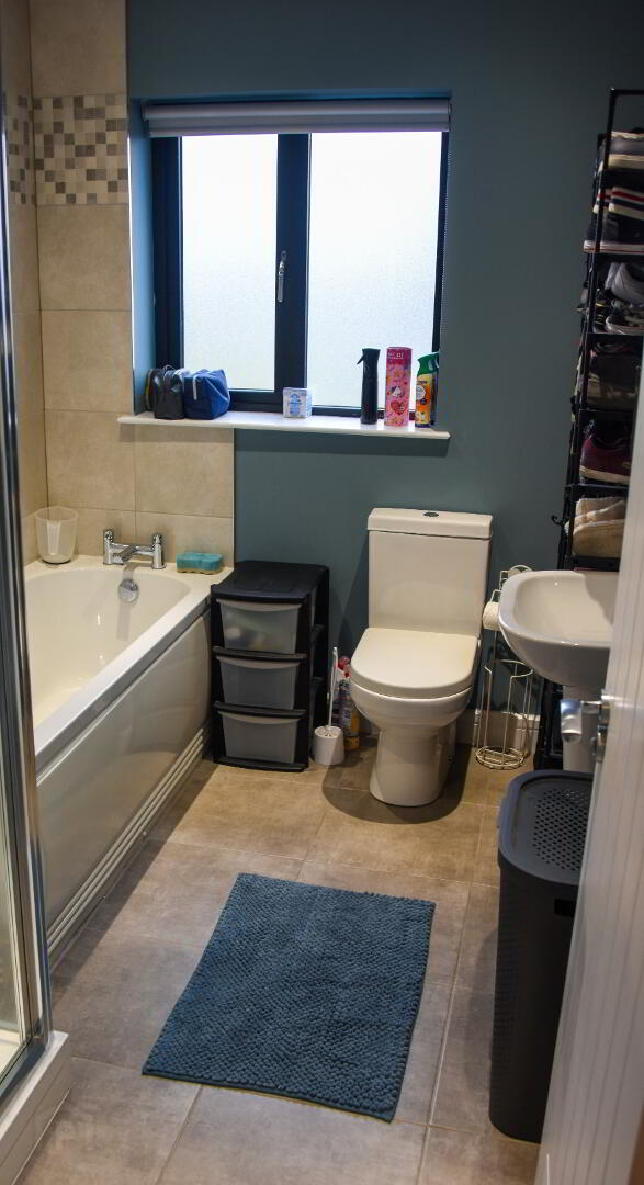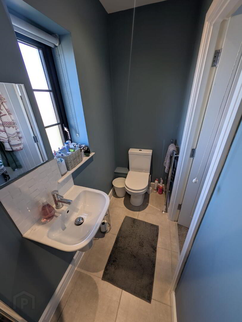 Downstairs WC – 1.5m x 1.3m Tiled flooring, low flush toilet and w/h/b.