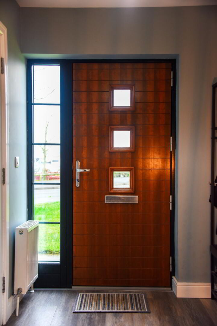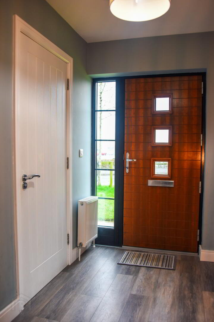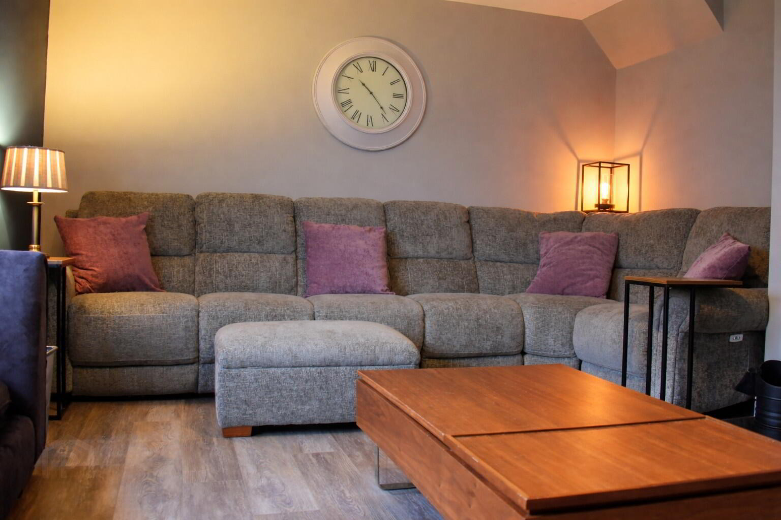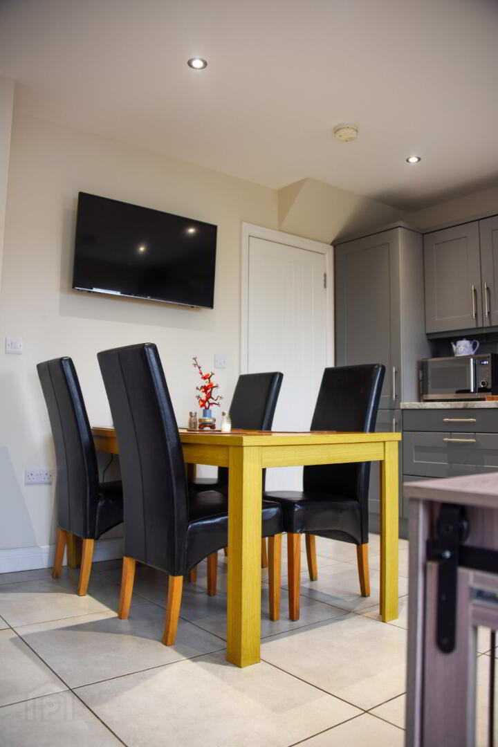Living room – 5.4m x 3.8m Wood effect click flooring, granite hearth with a log burner, large bay window.